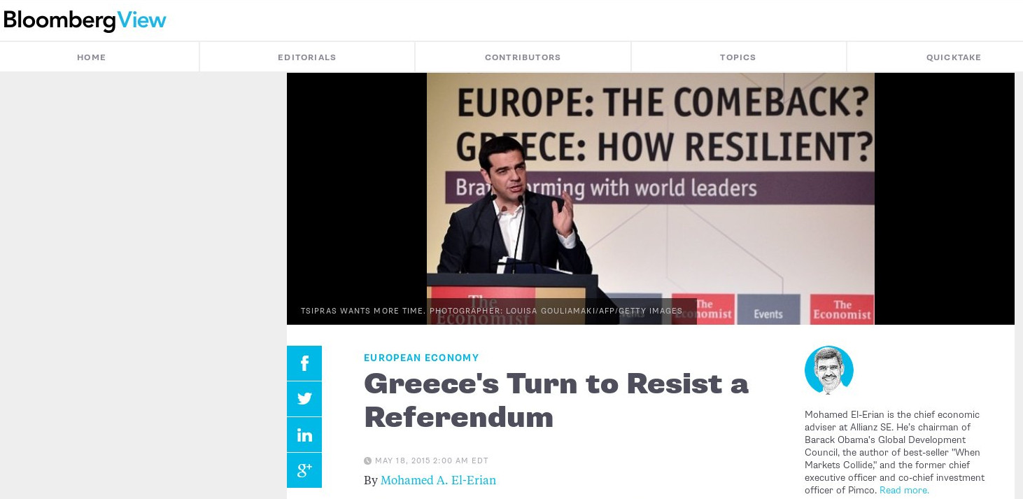 Ελ Εριάν: Γιατί αντιστέκεται ο Τσίπρας στο δημοψήφισμα ...και γιατί το θέλουν οι Ευρωπαίοι