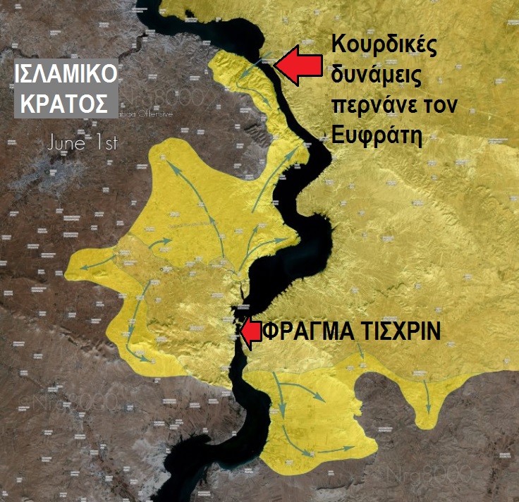 Η κουρδική επίθεση είναι ταχύτατη και το Ισλαμικό Κράτος δείχνει να αδυνατεί να τους συγκρατήσει. Οι Κούρδοι κατέλαβαν και το κάστρο Νατζμ, στις όχθες του Ευφράτη.