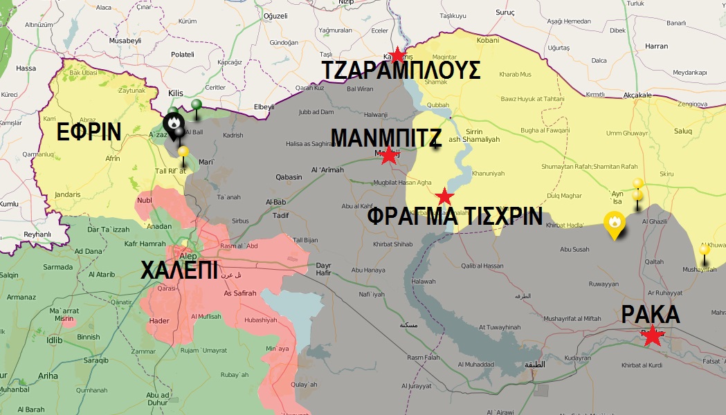 Μετά την ήττα των τουρκόφιλων ισλαμιστών (ανάμεσά τους και τουρκικών στρατευμάτων που είχαν μασκαρευτεί «αντάρτες») στη βορειοδυτική Συρία, οι Αμερικανοί έδωσαν το πράσινο φως στους Κούρδους να επιτεθούν και να καταλάβουν εκείνοι την περιοχή που δεν μπορεί ο Ερντογάν.