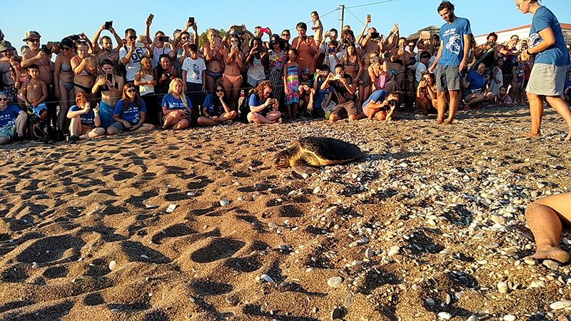 Στο φυσικό της περιβάλλον από την παραλία του Καλού Νερού επέστρεψε χθες το απόγευμα η θαλάσσια χελώνα καρέτα - καρέτα “Πηνελόπη” μετά την αποθεραπεία της.