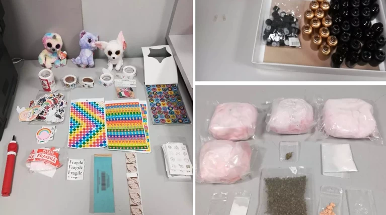 Η αντίστροφη μέτρηση για τη σύλληψη των διακινητών είχε ξεκινήσει και σε έρευνες που πραγματοποιήθηκαν στα σπίτια τους κατασχέθηκαν εκτός από ναρκωτικές ουσίες τα εξής αντικείμενα/εξοπλισμός: μία μεταλλική μήτρα τυποποίησης ναρκωτικών, έξι ηλεκτρονικές ζυγαριές ακριβείας, συσκευασίες αλουμινίου με τις οποίες συσκευάζονταν αεροστεγώς τα ναρκωτικά, συσκευές θερμοκόλλησης, αφαίρεσης αέρα και σφράγισης, εκτυπωτής ετικετών, ετικέτες barcode των ταχυδρομείων, φάκελοι αλληλογραφίας, λούτρινα κουκλάκια κ.ά.