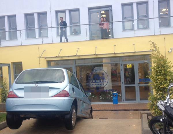 Έγινε κι αυτό στην Καλαμάτα.Στο δημαρχείο της μεσσηνιακής πρωτεύουσας λίγο έλειψε να μπει ένα αυτοκίνητο. Ανήκει σε πολίτη, που κάτω από αδιευκρίνιστες συνθήκες έχασε τον έλεγχο και έπεσε με το αυτοκίνητο στη μικρή σκάλα, που βρίσκεται στην πίσω είσοδο του δημαρχείου από την πλευρά του χώρου στάθμευσης. Ευτυχώς δεν υπήρξε κάποιος τραυματισμός.eleftheriaonline
