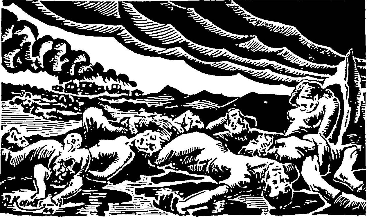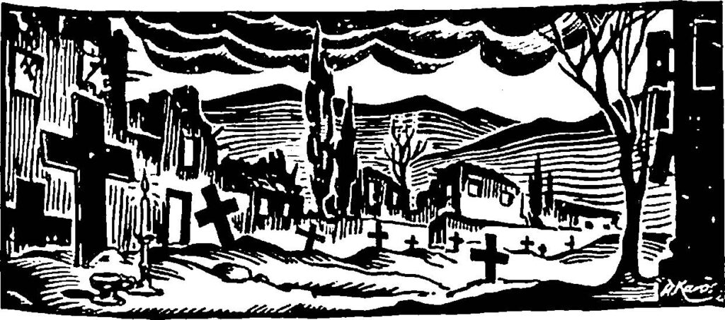 Η μέρα που «Η λόγχη και το βόλι, ανάλγητα, τους κόβουν τη φωνή και γιομίζουν τα σπίτια καταματωμένα κορμιά. Το αίμα απ’ τα θύματα γίνεται αυλάκι και κυλάει προς τα σοκάκια. Γέροι και γριές πέφτουν απ’ τα βόλια. Ανδρες κυλιώνται χάμω νεκροί μ’ απανωτές θανατηφόρες πιστολιές,
