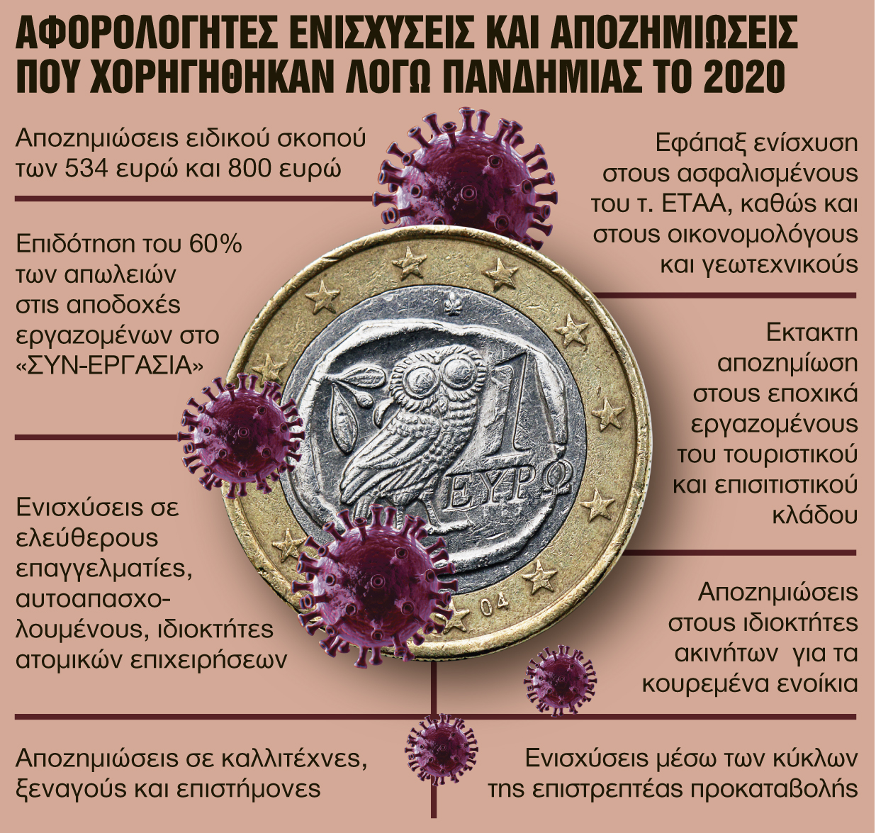 Το ξέσπασμα της πανδημίας και τα δύο lockdowns του 2020 είχαν ως αποτέλεσμα πάνω από 1 εκατομμύριο μισθωτοί του ιδιωτικού τομέα να τεθούν σε αναστολή εργασίας για διάστημα από έναν μήνα έως και 10 μήνες, εκατοντάδες χιλιάδες ελεύθεροι επαγγελματίες και αυτοαπασχολούμενοι να αναστείλουν τη λειτουργία τους για μεγάλο χρονικό διάστημα, ατομικές επιχειρήσεις να κατεβάσουν υποχρεωτικά ρολά και χιλιάδες ιδιοκτήτες ακινήτων να εισπράξουν υποχρεωτικά «κουρεμένα» ενοίκια.