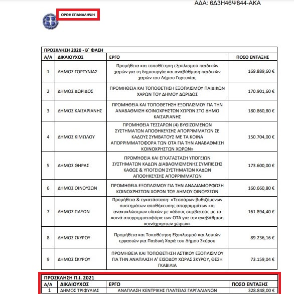 Παρουσιάζονται πλέον δύο πίνακες των έργων για τα οποία ελήφθη η απόφαση ένταξης.