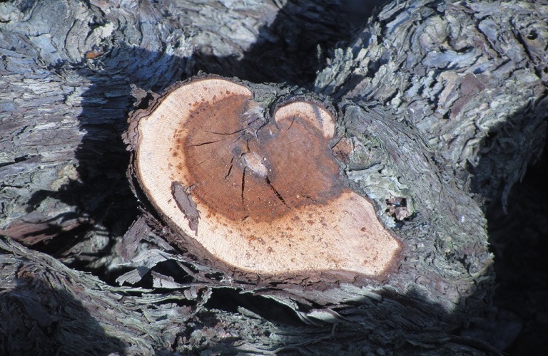 Ίσκα – Ευτυπίωση – Βοτρυοσφαίρια: Σε τομές του κλαδέματος, εμφανίζονται μη φυσιολογικοί μεταχρωματισμοί του ξύλου.