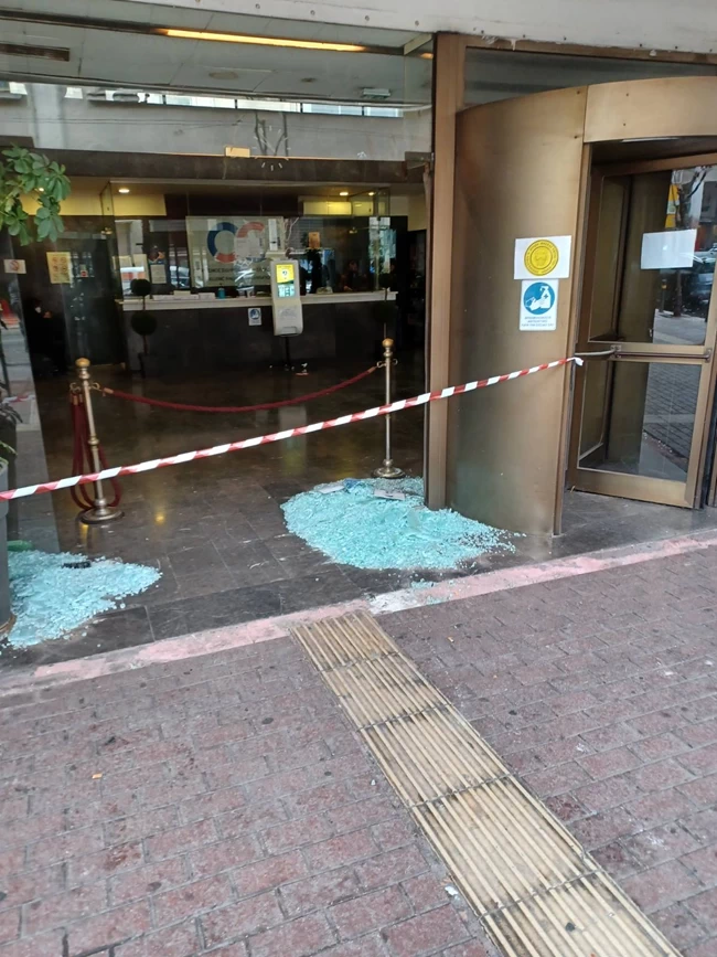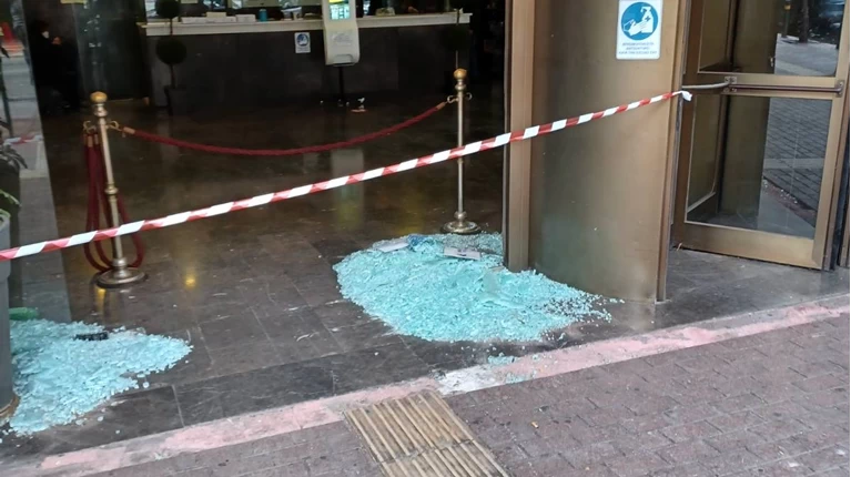 Τρία άτομα προσέγγισαν το κτίριο και δύο εξ αυτών έσπασαν τζαμαρίες στην είσοδο. Ο τρίτος τους τραβούσε βίντεο.