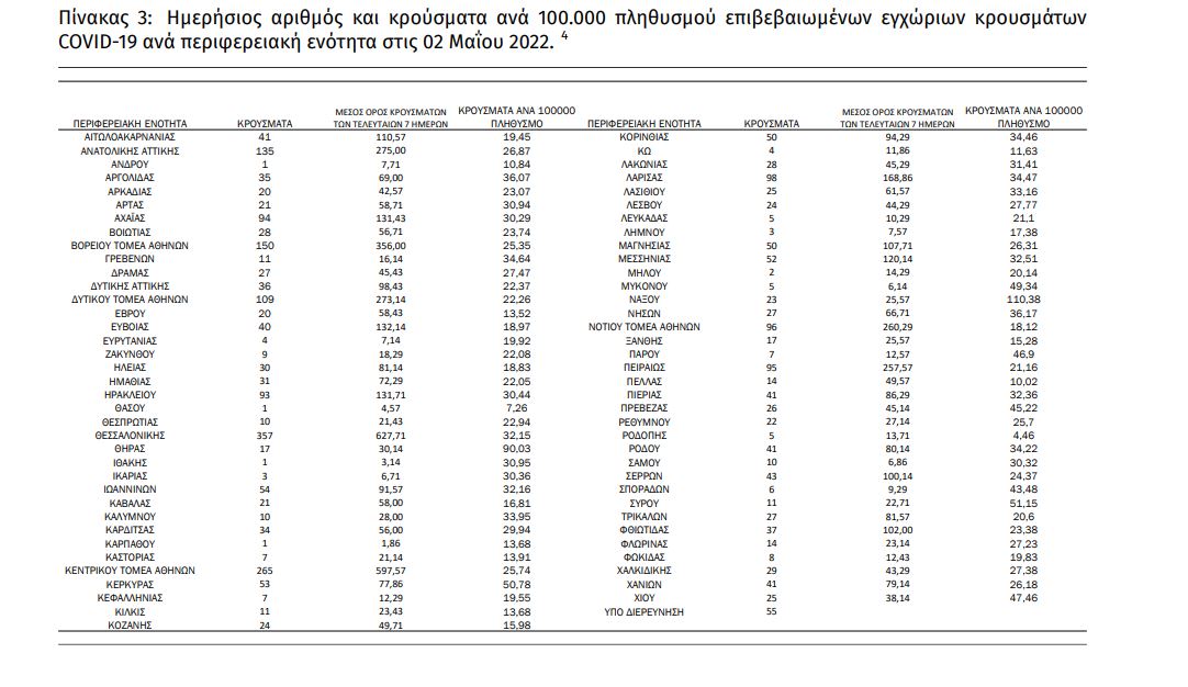 Η κατανομή των 2.877 νέων εγχώριων κρουσμάτων ανά Περιφερειακή Ενότητα παρουσιάζεται στον κατωτέρω πίνακα