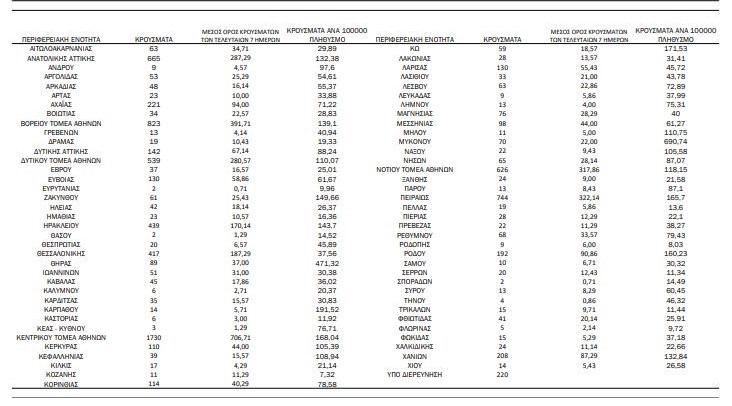 Δείτε την κατανομή των 9.108 νέων εγχώριων κρουσμάτων ανά Περιφερειακή Ενότητα στον παρακάτω πίνακα: