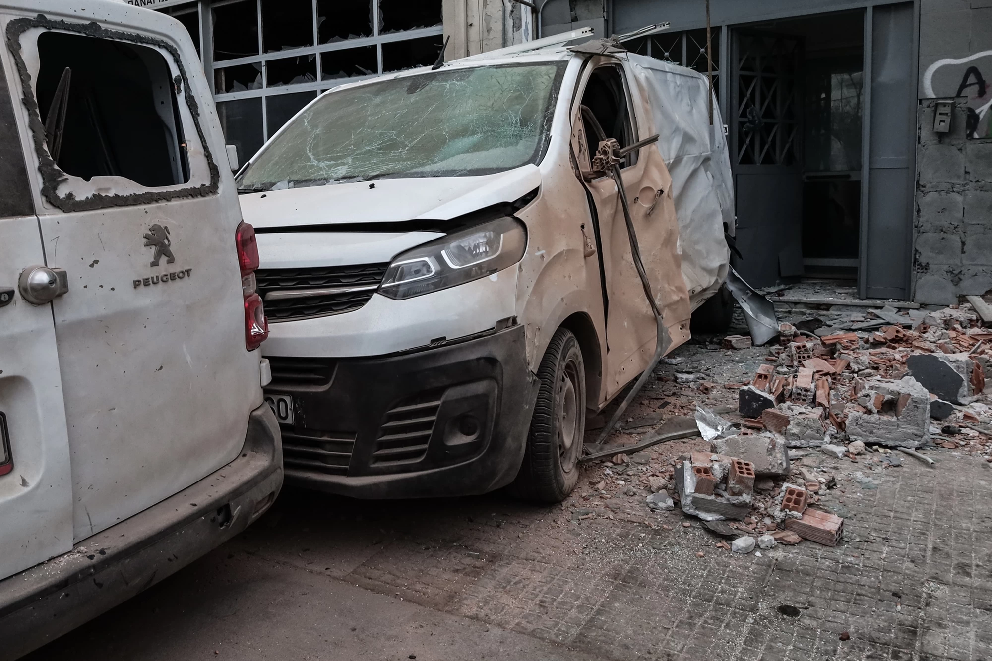 Το κατάστημα καπνικών έχει καταστραφεί ολοσχερώς, ενώ γύρω από αυτό όλα τα τζάμια από άλλα μαγαζιά έχουν επίσης καταστραφεί. Σε απόσταση 100 μέτρων λόγω του ωστικού κύματος έχουν σπάσει υαλοπίνακες.