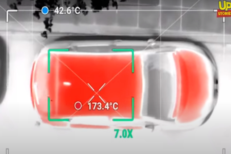 Αφού έκλεισαν τα τζάμια του οχήματος, περίμεναν 15 λεπτά. Μέσα σε αυτό το χρονικό διάστημα, με drone που ήταν εξοπλισμένο με θερμική κάμερα κατέγραφαν τη θερμοκρασία στην οροφή του αυτοκινήτου, που ξεπέρασε ακόμα και τους 170 βαθμούς Κελσίου.