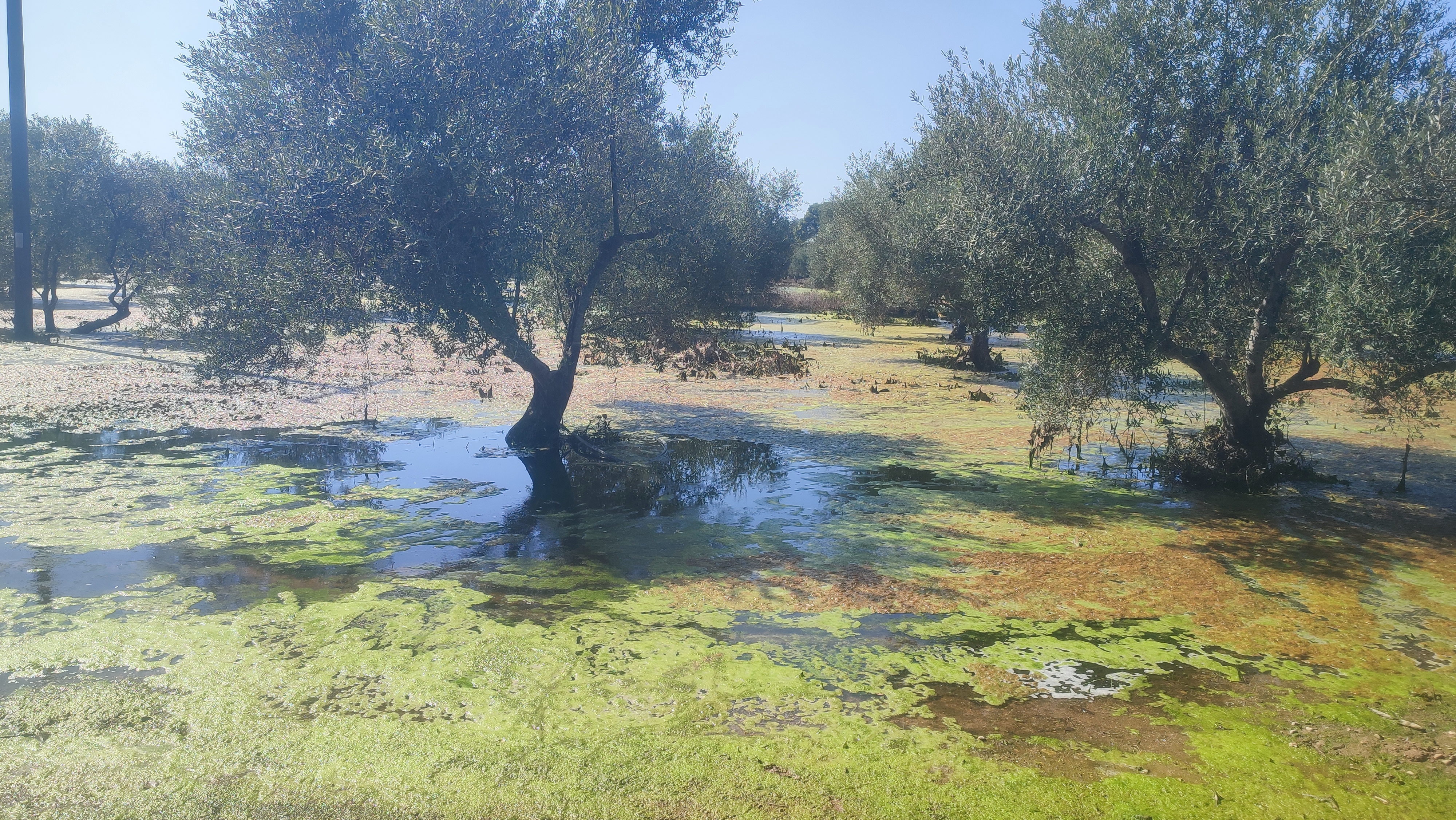 Τέλος έχουμε τις καλλιέργειες ελιάς όπου τα δένδρα για πάνω από ένα μήνα βρίσκονται πνιγμένα μέσα στο νερό. Τα δέντρα όπως φαίνεται δεν θα παράγουν για τη νέα χρονιά , αλλά σίγουρα κάποια κινδυνεύουν να ξεραθούν κιόλας , αφού δεν ξέρουμε πότε θα φύγουν τα νερά.